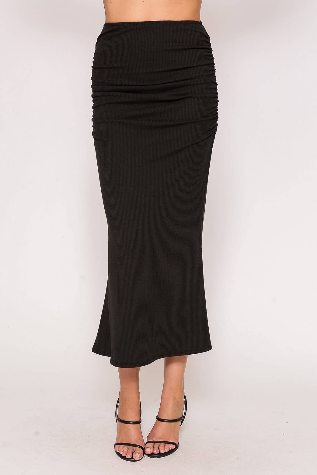 Looking for a new favorite skirt? Our Elastic High-Waisted Heavy Ribbed Knit Midi Skirt is just what you need! The side ruched detail adds a fun touch, and it looks amazing with the matching top (style number WN10882). Casual and chic, all in one!